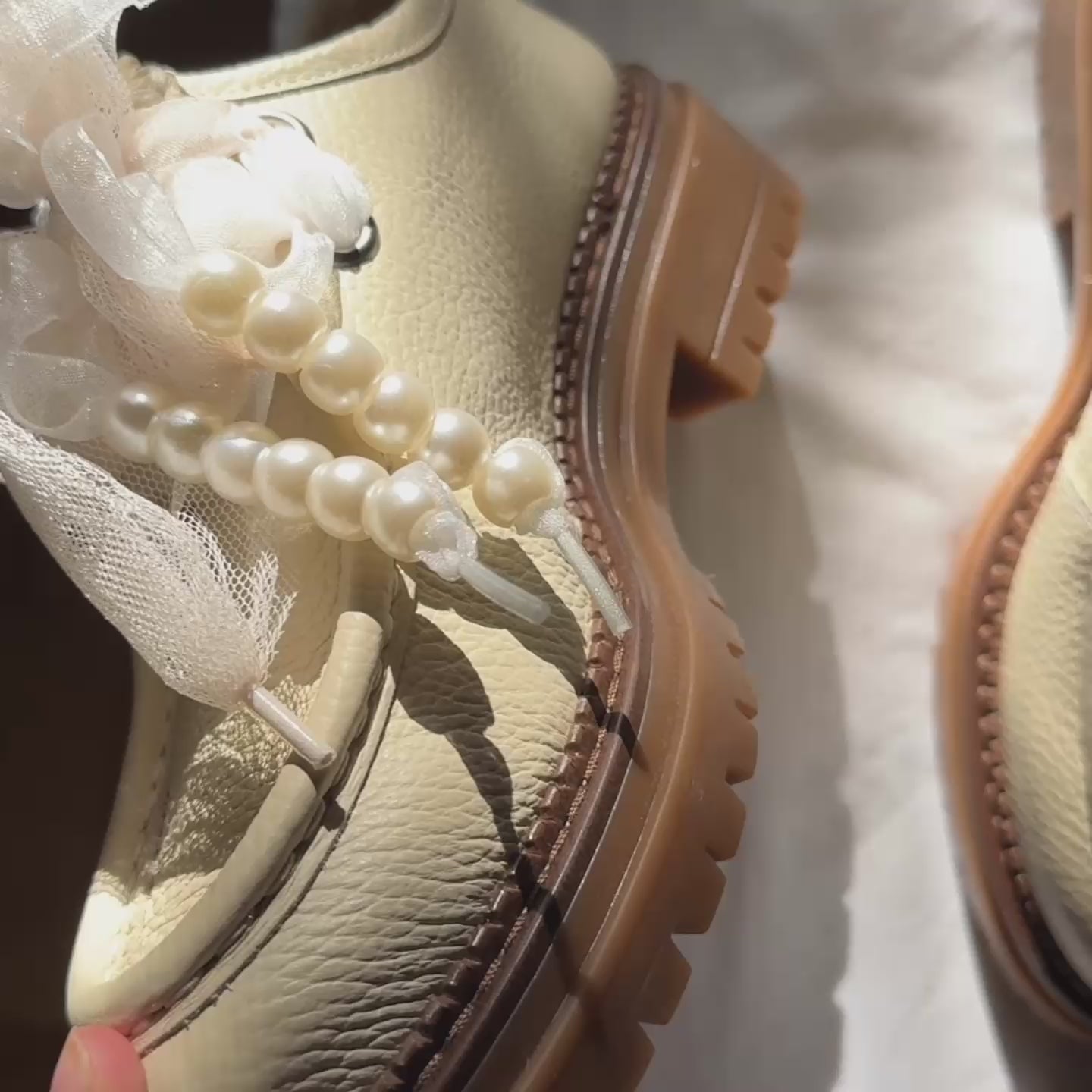 Add a touch of fun and elegance to your everyday look with these genuine leather loafers, made from soft and durable leather. The elegant laces and pearls beads make each pair unique and full of personality.